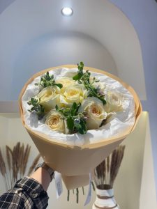 Букет цветов из 7 Роз канделайт и 5 незабудки